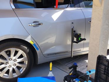 This can be done with half the cost of a body shop in half the time. Paintless Dent Repair.